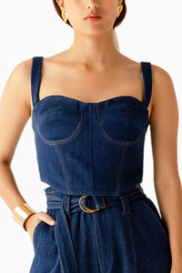 This denim structured corset made in our most loved handwoven denim and is a great piece to style with your denim or on top of a dress