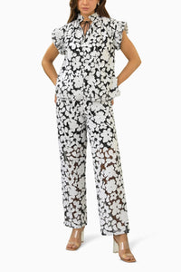 Featuring 3-D Flower Contast Co-ord Set by Kay Kay from Sunset and Palms collection. A crisp white co-ord set showcasing a top and pants, exuding effortless sophistication and versatility.