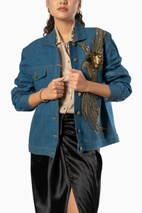 Featuring 3D Bird Hand Embroidered Denim Jacket by Kukoon, this unique jacket showcases intricate 3D bird embroidery, adding a creative touch to classic denim. Perfect for elevating any outfit, it combines artistry with timeless style for a standout look.