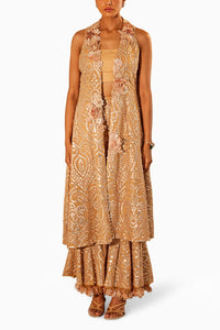 Elevate your style with our Gold 3D Embellished Fusion Set. Crafted from exquisite Mirrorwork, it offers a comfortable fit and showcases a dazzling blend of tradition and modernity.