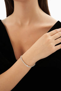 Featuring A Blooming Tale Bracelet by KAI Jewels. Immerse yourself in the stylish fragrance of sparkling blooms designed to radiate. With a dazzling design embellished with zircon-studded round blooms aligned together with zircons, this sterling silver tennis bracelet adds a touch of elegance to your overall look. Embrace effortless grace and enhance your inherent enchanting charm.