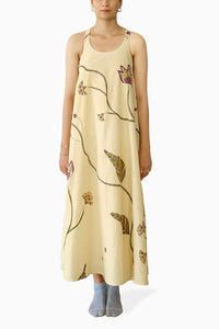 Discover your ideal summer dress with our cross-strap back design and flared silhouette, featuring this season’s signature print. Designed with a regular fit and crafted from 100% cotton, it is hand-painted with a blend of Kassim, Lac, Myrobalan, and Green Lake dyes. This dress combines effortless style with artisanal craftsmanship for a standout summer look.
