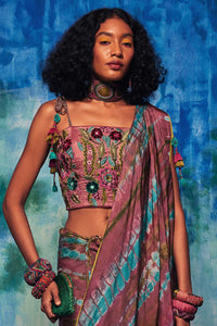 Introducing our fully embroidered silk blouse, featuring interlining for added structure. Adorned with dori straps and tassel detailing embellishments, this exquisite piece blends elegance and artistry, making it perfect for festive occasions and special events. Elevate your ensemble with this stunning blouse!