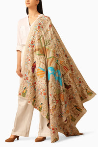 Introducing our exquisite tila kalamkari work, pure hand pashmina shawl, Aanshi showcasing a stunning royal design in white base, adding a touch of elegance to any ensemble.