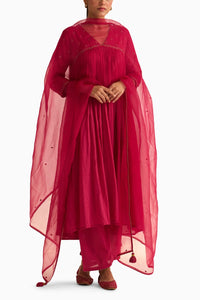 Organza dupatta with delicately embroidered flowers all over the dupatta adorned with beautiful handcrafted tassels.