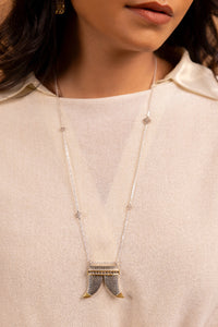 Ace Necklace by UNCUT is a striking blend of contemporary sophistication and artisanal charm. Designed in an elegant silver–gold dual tone, it features natural Polki accents that add subtle brilliance. A versatile statement piece, it elevates every ensemble with refined ease.