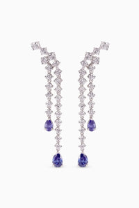 Light as air, bold in presence—the Aeris Drop Earrings bring effortless sophistication to your everyday style. Two delicate strands of round stones fall gracefully at varying lengths, each finishing with a pear-cut drop for just the right touch of movement and color. The subtle curved top creates a semi-ear climber effect, adding a sculptural elegance without being overdone. Minimal yet striking, these earrings are designed for those who love refined simplicity with a modern edge.