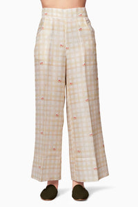 Uncovering the After Glow Rosette Trousers, a sartorial marvel blending opulence with ease. Crafted from Chanderi silk, lined with pure mulmul cotton, it epitomizes luxury and comfort. Featuring a distinctive half-belt, half-elastic style for a personalized fit, adorned with a captivating countryside print. Versatile and chic, a statement piece for endless styling possibilities.