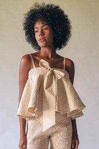Bows were her favorite thing to wear. And that in itself would have been enough, but what made this her favorite top was the fact that it could be worn also as a skirt! - with the bow in the front, embellishing her chest, or her back, or her waist, or the small if her back! The quilting helped keep the fabric afloat around her, adding another element of playfulness to the already joyous silhouette.