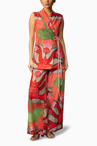 Introducing the Akshi Set, a fusion of modern aesthetics and comfort. This ensemble showcases a printed waistcoat-style top paired with matching trousers, crafted from lightweight and luxurious cotton silk. Ideal for those who appreciate effortless style and versatility, this set promises a chic and comfortable wear experience for any occasion.