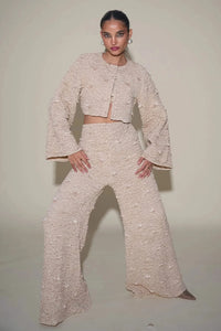 Featuring the Alabaster Satin Wide-Leg Pants from ACQUIRE's Lot-5 Collection, these voluminous, comfortable pants offer a perfect blend of style and elegance. Crafted from luxurious satin, the wide-leg design ensures effortless movement and an airy silhouette. The pants are meticulously hand-smocked and hand-embroidered with tonal pearls, adding a touch of intricate artistry to the design. Ideal for any occasion, the Alabaster Satin Wide-Leg Pants combine comfort with refined luxury, making them a standout addition to your wardrobe.