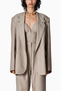 The Alex Blazer 2.0 is an ode to classic tailoring. Cut from a luxe suiting fabric it has an oversized fit. It is designed with notched lapels, shoulder pads for added structure and a single breasted button fastening. Complete your set with our matching trousers and corset or style it as a separate over your dresses or jeans.