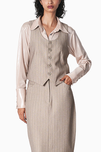 The Alex Waistcoat is an ode to classic tailoring. It is cut in a comfortable suiting fabric. Tailored with a round neck with a single-breasted front with a buttoned closure. Wear it with our tailored pants for your next pitch meeting to show them you mean business.