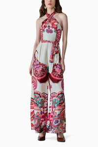 Alexa Paisley Halter Neck Jumpsuit with Detachable Belt
