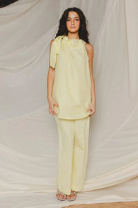 A breezy silhouette with a refined touch, the Alira Top! Features a softly gathered neckline with a halter tie, falling into a relaxed A-line shape. Effortlessly elegant and perfect for sunlit days or easy evenings.