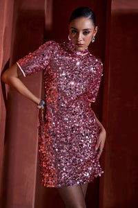 Featuring All About Cosmos Pink Party Dress by Bohochic's Lumiere Collection. Hand-sequinned on soft tulle, this cosmos pink mini dress sparkles beautifully. Perfect for milestone moments or a glamorous New Year’s Eve celebration, it delivers bold elegance and party-ready charm.