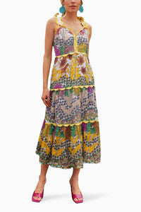 You can keep flowers alive inside your wardrobe year around. Nature inspired print with an easy fit and shoulder ties. The scallop lace trims and the striking print makes this flowy dress a must have all year around. Pair it with bold heals and accessories.