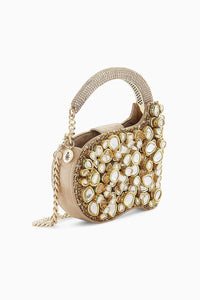Material- Multi Jadoo Stones, Lining- Suede Color- Gold Details- Embellished Closure- Button Lock Dimensions- Bag (cm) 14.5*19*3.5 Product Code- SVEANAAAN-HB-030