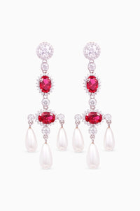Material- Metal- 925 Sterling Silver Stones- Imported Cubic Zirconia, Red Stones and White Pearls Plating- White Rhodium Color- Red and White Detail- Push Back Dimensions - 60mm x 46.80mm Product Code- SVEPRATAERS-037-RD