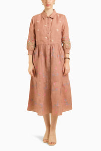 This elegant almond printed gathered dress in linen is enhanced with beautiful embroidery details, adding a refined and artistic touch. The gathered design creates a flattering silhouette, while the lightweight linen fabric ensures comfort and breathability. Perfect for both casual and semi-formal occasions, this dress combines effortless style with intricate craftsmanship for a timeless look.