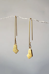Sleek golden earrings crafted in brass, featuring elongated drops with textured geometric pendants. Lightweight and contemporary, they offer a refined accent with understated elegance for everyday and occasion wear.