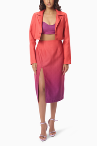 The Alyssa Bralette boasts a sweetheart neckline, perfect for layering under an open blazer and accentuating with statement jewelry. Complete the ensemble with the Alyssa Midi Skirt, featuring a classic fit with contemporary flair, and the essential Alyssa Blazer, cropped with full sleeves for a polished finish.