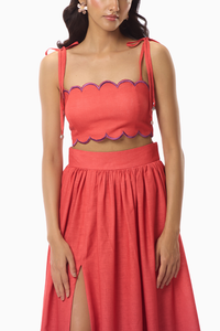 The Alyssa Crop Top seamlessly blends contemporary style with elegant detailing. Featuring Verano's distinctive scalloped embroidery, it boasts a cropped fitted bodice with built-in chest pads for a flattering silhouette. The self-tie shoulder straps adorned with baroque pearl accents add a touch of sophistication, while the elasticated back with hook closure ensures comfort and versatility.