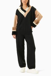 Miris a ma lia coord set is ma de in wa rm peca n, ecru a nd bla ck color - a pa lette which gives the perfect touch of boldness we a ll need a t times! The a ma lia set ma de in Miris signa ture wool blend is luxuriously soft a nd cosy. It a lso comes with deta cha ble fa ux mink cuffs a dding to the eleva ted feel of this piece! This outfit will not only keep you cosy, it will a lso keep you pa rty rea dy!