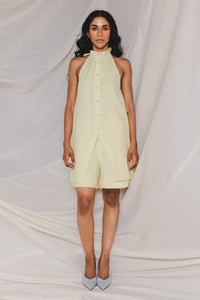 Composition: 100% European Linen Color: Yellow Fit: True to size Length: Top - 31 inch, Short - 16 inch Model Height: 5'9 Size Worn by Model: Small Components: 2 Product Code: SVENIRVLCRDVOL410