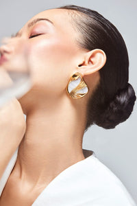 These elegant earrings feature iridescent Mother of Pearl set on a hypoallergenic brass base, with durable sterling silver posts for a touch of sophistication and comfort. Ideal for sensitive ears and versatile enough for any occasion.