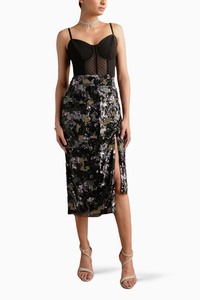 Elevate your style with the perfect pairing of the Amelia Corset and Amber Skirt by NSS's The Bloom Collection. Crafted from Tulle & Crepe in timeless Black, this ensemble exudes sophistication and allure.