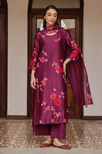 Scattered blooms lend charm to the Amethyst Applique Floral Kurta Set, with contrasting applique blooms accenting the kurta and sleeves. Pair it with matching pants and a dupatta adorned with blooms and finished with tassels, a graceful ensemble made for festive occasions.