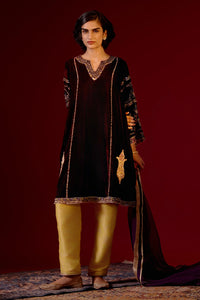 Elevate your style with this silk velvet kurta set, featuring stunning hand-embroidery in zari, cutdana, sequin, and thread work. A perfect fusion of luxury and tradition, it adds a touch of elegance to any special occasion.