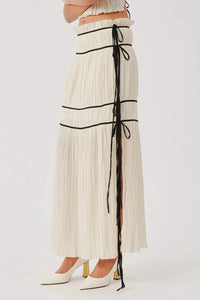 Featuring the Amour Skirt from Aroka's Signature Collection, a straight-fit skirt crafted from soft muslin, defined by all-over ruching that adds sculpted texture. Designed with a mid-rise waist and subtle front tie-up accents, it falls into a clean, streamlined silhouette perfect for versatile styling.