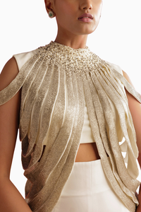 Featuring the Ana Top by NSS's The Bloom Collection, a vision in Ivory crafted from Tulle & Crepe. The multi-layered blouse is intricately embellished with pearls, bugle beads, and rhinestones, adding a touch of elegance to your ensemble.