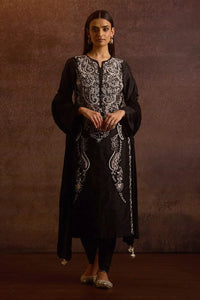 Ananta Black Silver Dabka Zardozi Raw Silk Straight Kurta Set