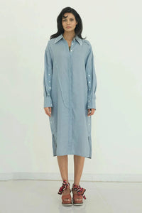 Slip into effortless elegance with the Anastasia button down dress. Crafted from 100% linen, this long button-down dress is the perfect fit, where comfort meets chic. Adorned with exquisite embroidery, it's your go-to piece to take you from a casual day to a stunning night in style.