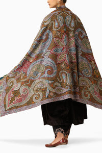 Indulge in vibrant luxury with the Andri Pashmina Shawl. Handwoven pashmina wool meets exquisite Kalamkari Adda work, creating a stunning shawl draped in silk stories. Soft, warm, and lightweight.