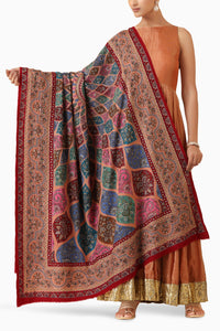 Make a statement with the Anhiga Pashmina Shawl. Handwoven from pure pashmina wool, this shawl features captivating Kalamkari artwork in a bold and vibrant style. Featuring large, striking designs, it's a unique fusion of luxury and cultural heritage.