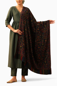 Featuring a captivating multicolor Kani all-over design, the Anjisha shawl is made from luxurious Cashmere Fine Wool. It combines exquisite craftsmanship with vibrant colors.