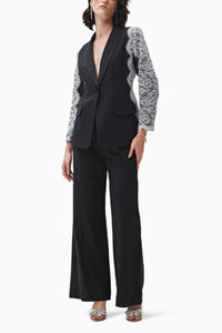 Featuring the Alexa Co-Ord Set from The House of Exotique. Elevate your style with a Black and white lace blazer set. Crafted from linen for a comfortable fit.