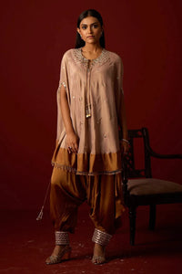 Step into elegance with these Antique Gold Satin Afghani Dhoti Pants. Featuring a low-crotch silhouette, intricate zari mirrorwork, and long tassels, these satin pants blend traditional charm with modern style for a standout look. Perfect for festive occasions or statement-making ensembles.