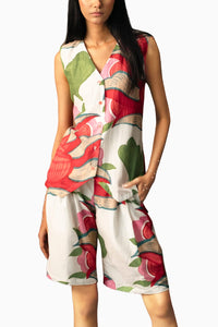 Introducing the Anya Set, a fusion of modern aesthetics and comfort. This ensemble showcases a printed waistcoat-style top paired with matching shorts, crafted from lightweight and luxurious cotton silk. Ideal for those who appreciate effortless style and versatility, this set promises a chic and comfortable wear experience for any occasion.
