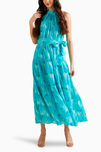 Easy Breezy, our Aqua Maxi Dress is detailed with pleats and frills which are repeated along the dress along and includes puffed sleeves. Adding a fun element of fabric ties gives the dress such a relaxed fit. Pair this up with silver flat and hoops!