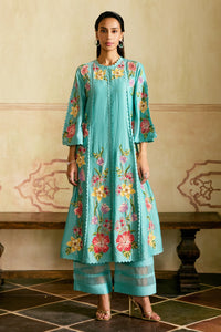 Aqua Mosaic Floral Kurta with Sheer Detail Pants