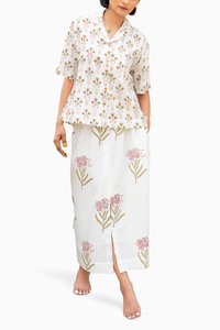 This co-ord set, featuring a skirt and shirt, is the perfect combo of chic and casual. The color combo keeps things light and refreshing - perfect for lounging in or going out. Elevate your style game with this co-ord set that effortlessly blends chic and casual. The refreshing colours add summertime bliss! easy, comfortable and breathable. This outfit is made in 100% cotton zayka fabric. The skirt is made with cotton lining. Elastic on the back of the skirt makes it an easy fit! The shirt comes in a loose easy fit style!