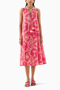 The Areca Palm A-line Dress crafted from our stunning cotton fabrication, trans-seasonal, is a statement piece. Made in our 100% cotton slub, this dress has an embroidered collar with a v-neckline. Featuring an a-line look, it has strings in the front with shell tassles. With pockets on the side, this piece has a relaxed look and can be styled in different ways. It can be Paired with heels for a festive look.