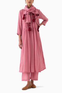 Featuring Aria Striped Kurta Set with Dupatta by DOT. This Pink ensemble, crafted from Cotton Silk, features a tailored fit for elegance. Complete with a matching dupatta, its perfect for timeless style and comfort.