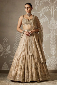 The Arnika Lehenga Set is a couture celebration of elegance, featuring a tissue embroidered blouse, placement-embroidered lehenga, and a four-sided embroidered tissue dupatta. With luxurious textures and intricate craftsmanship, this designer ensemble captures timeless grace, making it a statement of regal sophistication and modern refinement. An heirloom in the making.