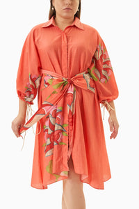 Introducing the Arya Dress, a blend of sophistication and contemporary charm. This shirt-style wrap dress is crafted from cotton silk, lined with cotton for comfort. Perfect for those who admire effortless elegance and versatility, it promises a flattering silhouette and comfortable wear for any occasion.